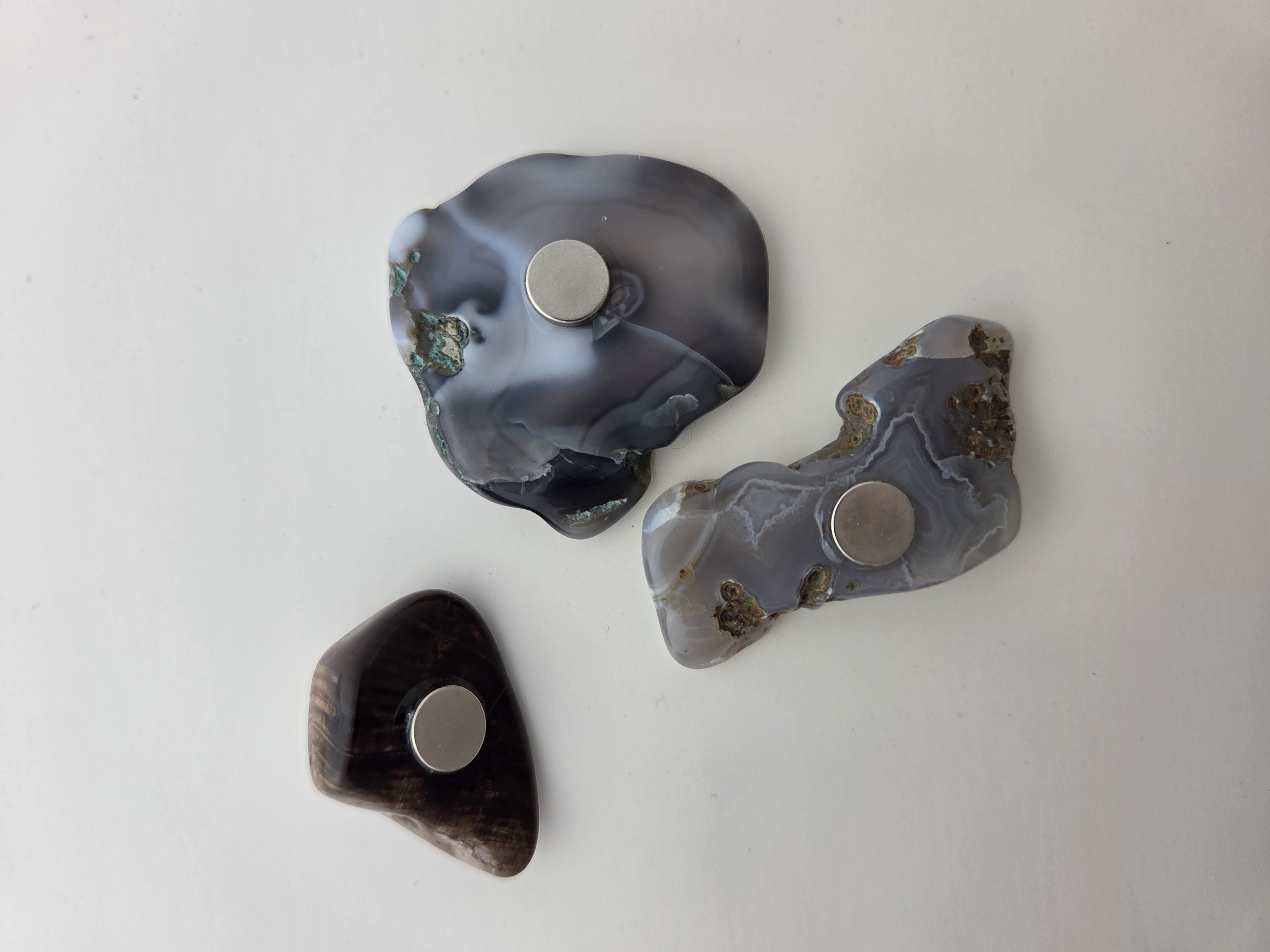Ranging from 0.5 to 3 inches, these magnets are cut and polished into the shapes that best depict the beauty of each stone. No two sets are exactly alike.