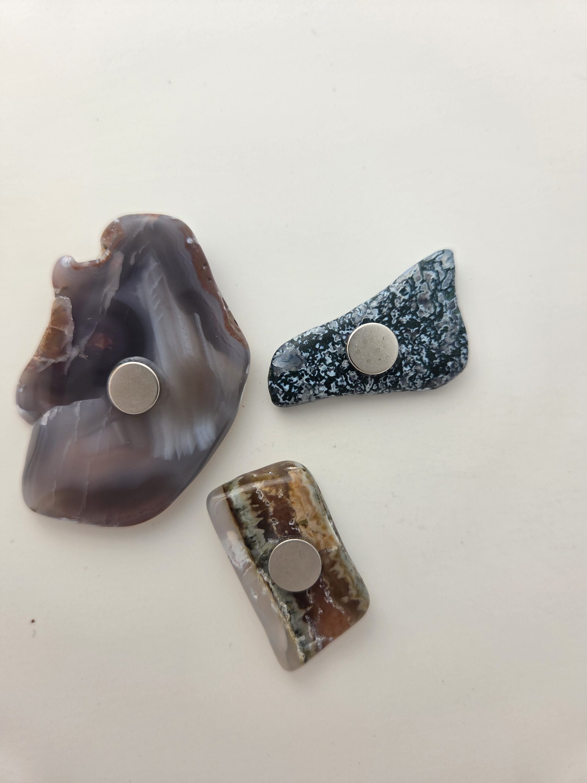 Ranging from 0.5 to 3 inches, these magnets are cut and polished into the shapes that best depict the beauty of each stone. No two sets are exactly alike.