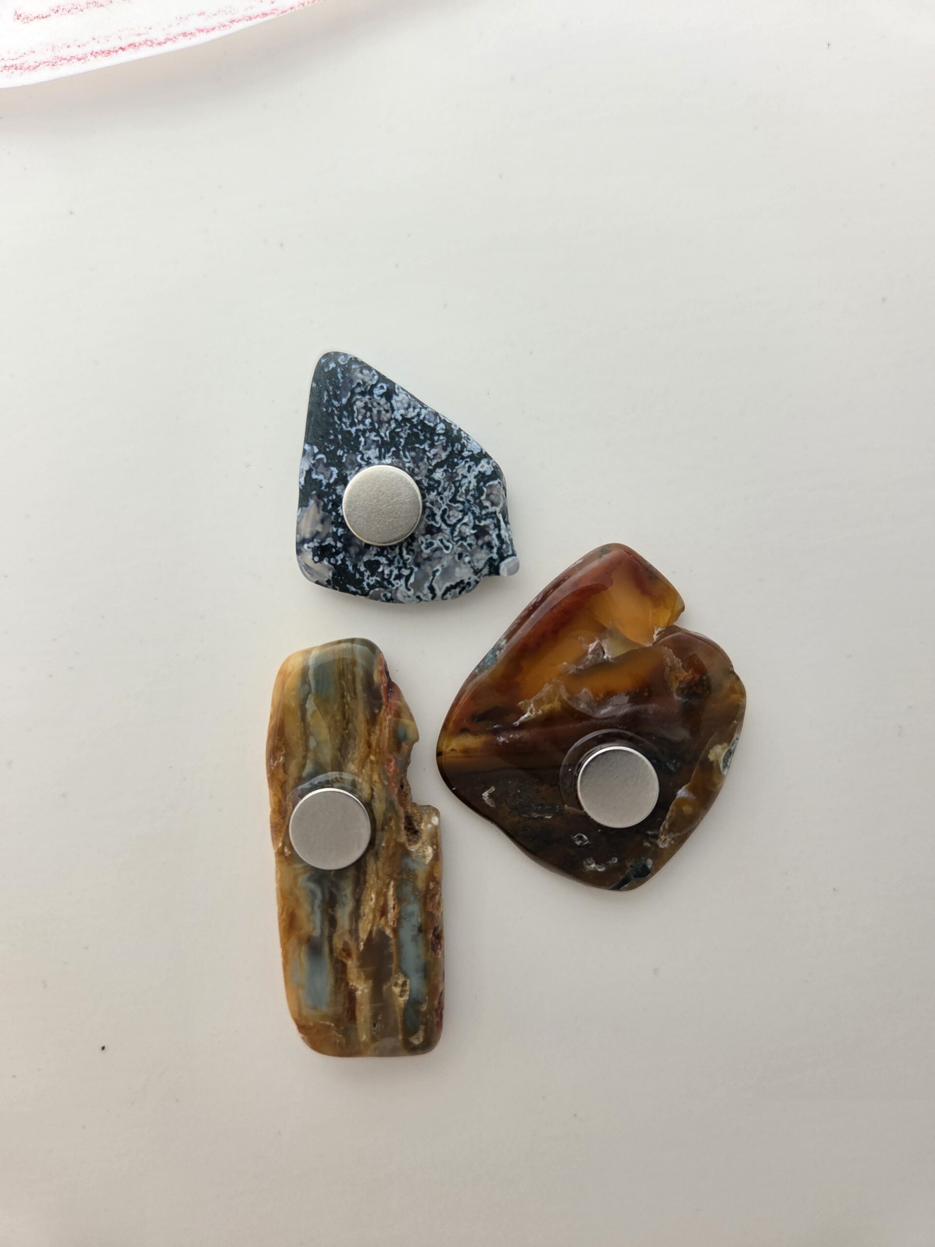 Bring a subtle touch of Idaho’s natural artistry into your home or office with this 3-pack of ethically collected and hand-polished stone magnets. Each magnet is one-of-a-kind and crafted from natural, undyed agate, chalcedony, jasper, or petrified wood, retrieved and crafted exclusively from the wild mountains of central Idaho.