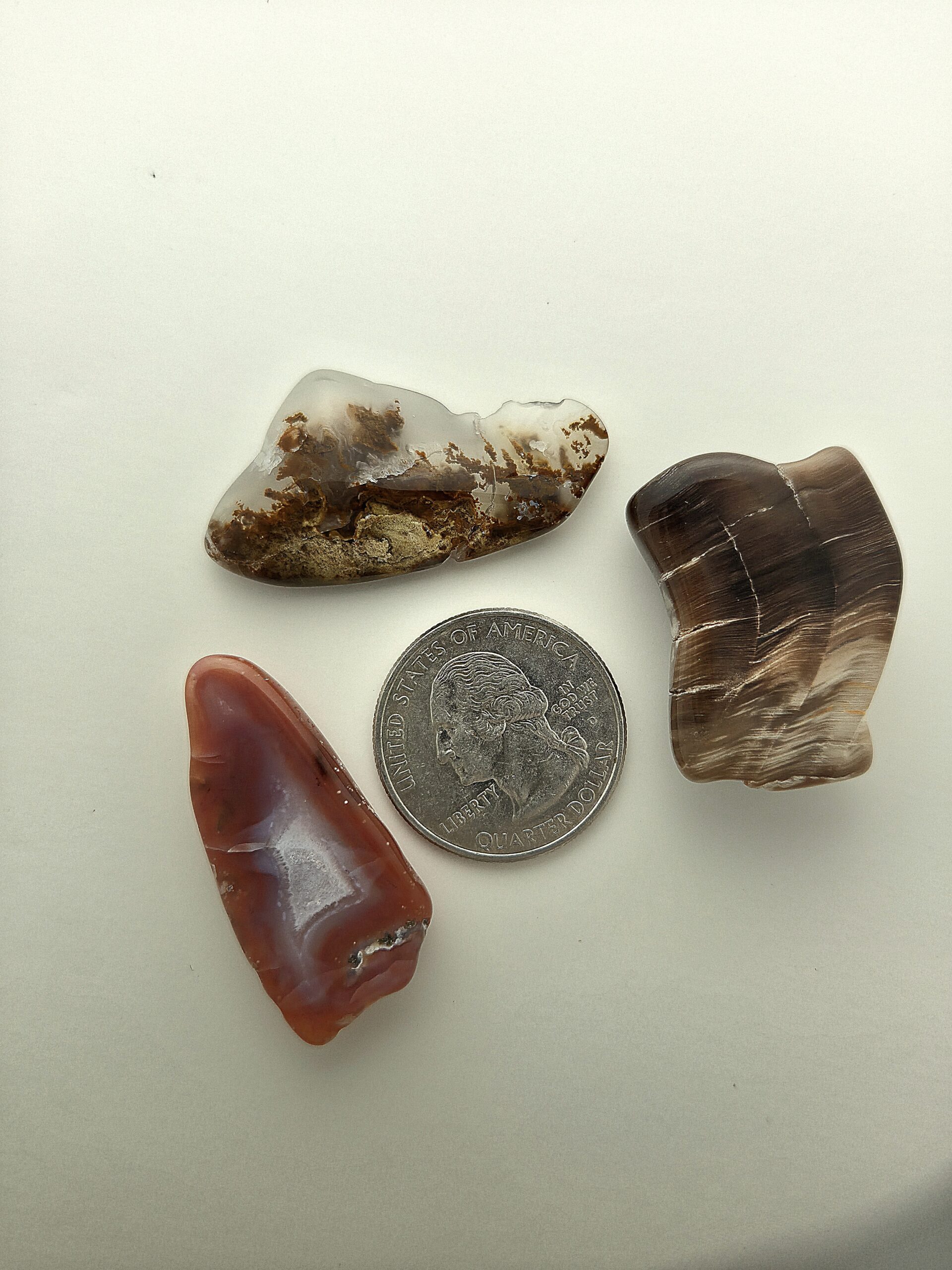Bring a subtle touch of Idaho’s natural artistry into your home or office with this 3-pack of ethically collected and hand-polished stone magnets. Each magnet is one-of-a-kind and crafted from natural, undyed agate, chalcedony, jasper, or petrified wood, retrieved and crafted exclusively from the wild mountains of central Idaho.